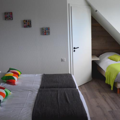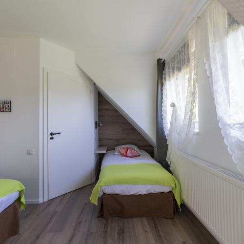 Zimmer für 3 Personen mit zwei Einzelbetten und einem kleinen Bett.